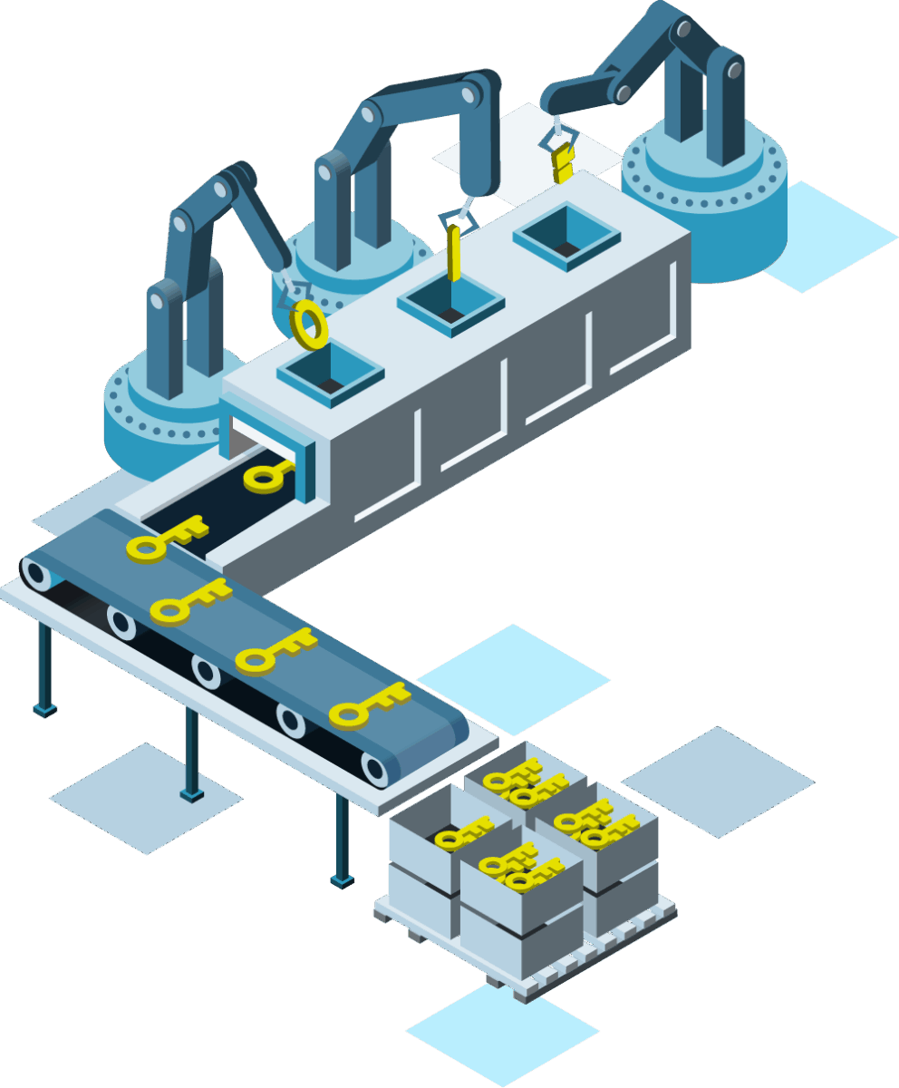 isometric illustration of a managed service provider standing on the portal logo looking at three benefits of portal.
