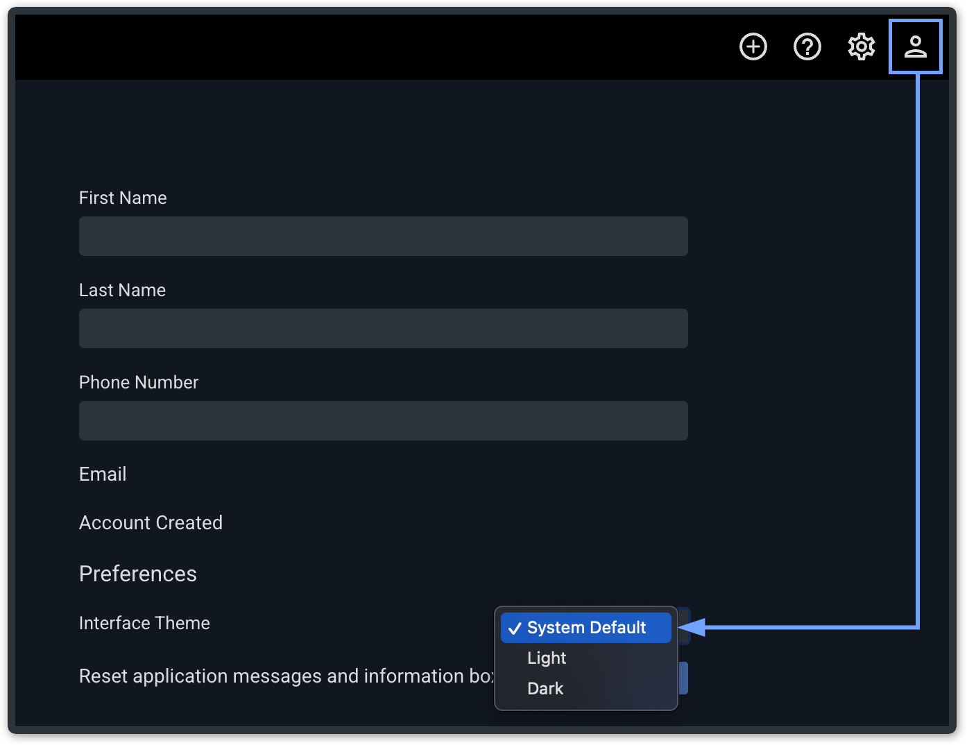 By default, PepperDash Portal will follow your browser’s theme preferences. But if you’d rather set it manually: